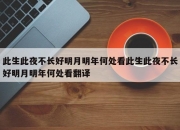 此生此夜不长好明月明年何处看此生此夜不长好明月明年何处看翻译